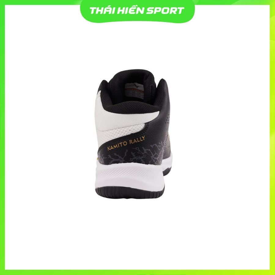 Logo chim Kamito dập nổi hai bên má, tên “Kamito Rally” in sắc nét ở gót và lưỡi gà, mang đến tổng thể mạnh mẽ, hiện đại và đầy khí chất thể thao.
