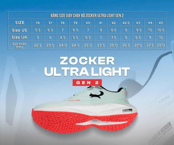 Giày Chạy Bộ Zocker Ultra Light Gen 2 – Siêu Nhẹ 200g, Êm Ái, Bền Bỉ