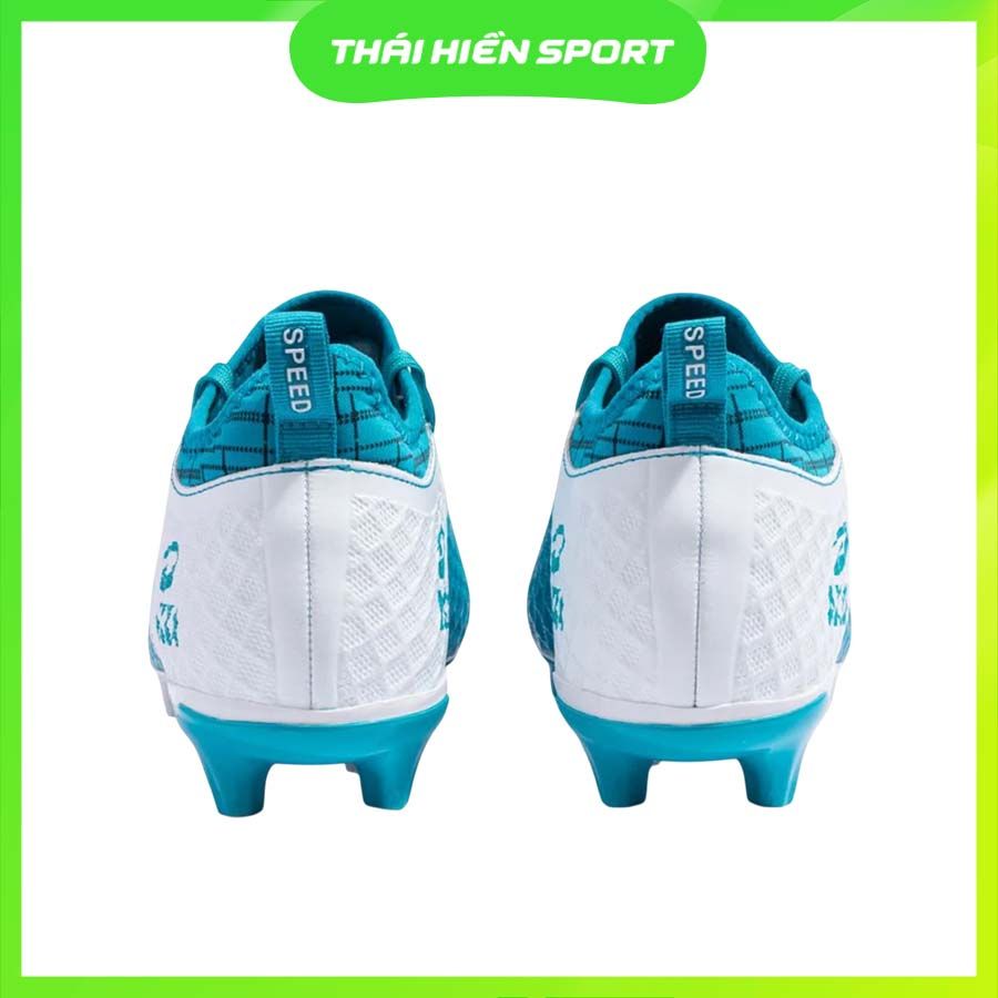 Khác với phiên bản TF (dành cho sân nhân tạo), AKKA Speed 2 FG sở hữu đế FG (Firm Ground) với hệ thống đinh dạng hình lưỡi dao và trụ tròn, được bố trí khoa học, giúp tăng độ bám trên mặt sân cỏ tự nhiên. Thiết kế này hỗ trợ tăng tốc nhanh, chuyển hướng linh hoạt và hạn chế trơn trượt khi sân ướt – cực kỳ quan trọng trong những pha bóng tốc độ cao.