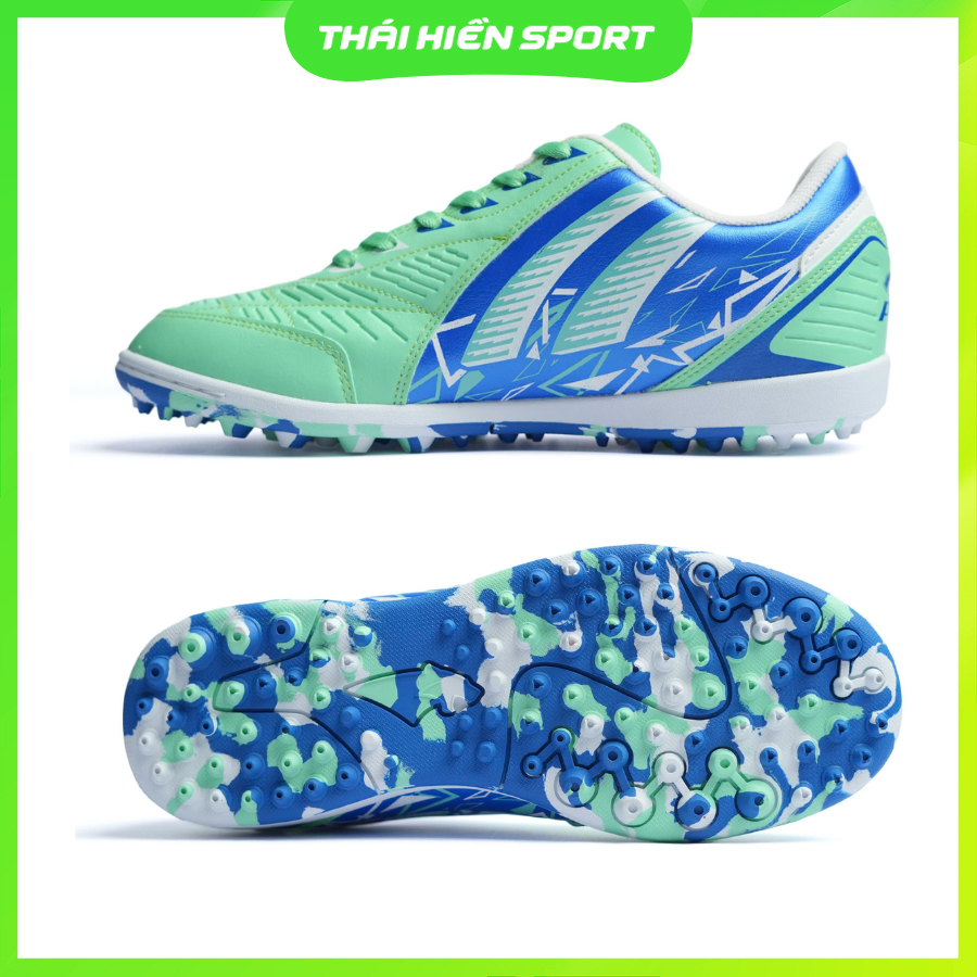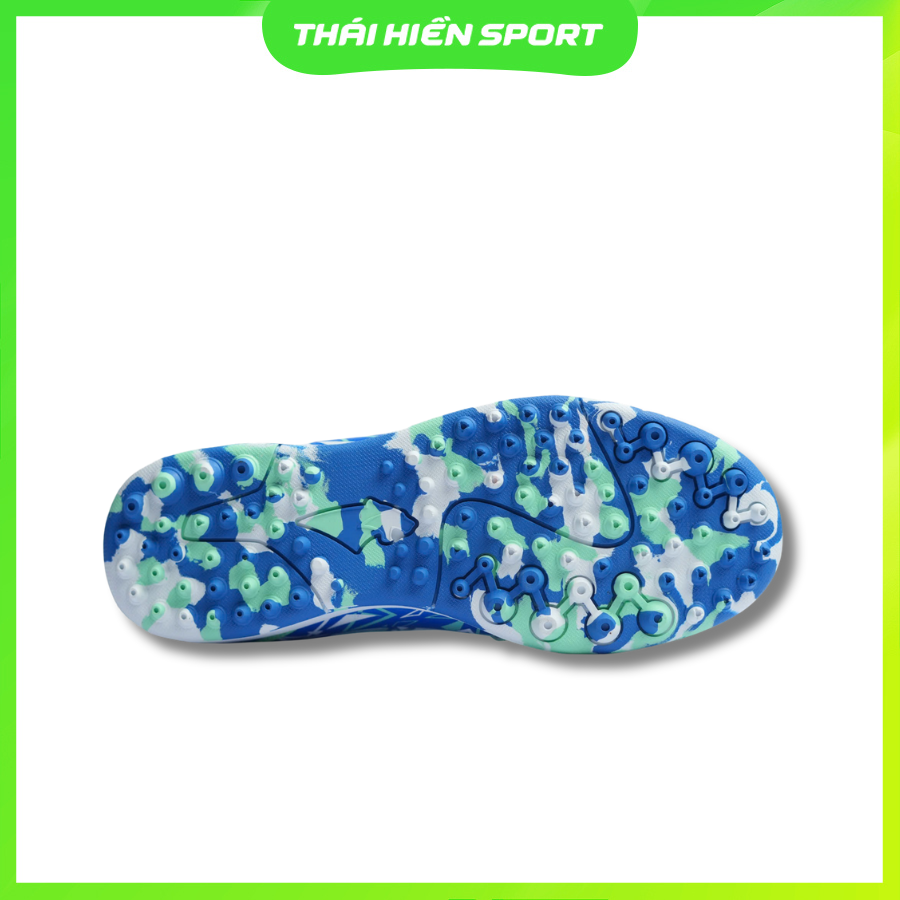 Đế giày sử dụng cao su mềm chuyên dụng cho sân cỏ nhân tạo (TF), với các chấu nhỏ phân bố đều. Thiết kế này giúp tăng độ bám sân, hỗ trợ xoay người, chuyển hướng và tăng tốc mượt mà, đồng thời giảm trơn trượt trên mặt sân cứng.